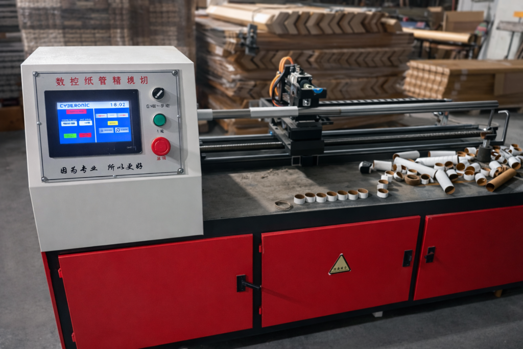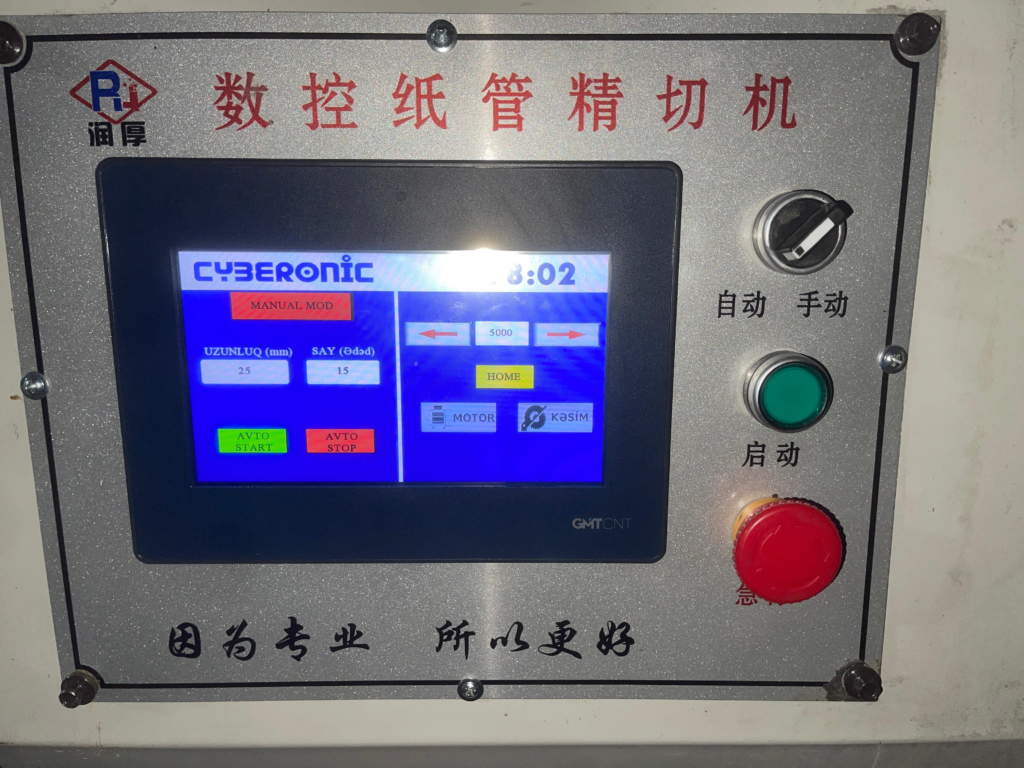 Bu layihə çərçivəsində uzun müddət istismarda olmayan və köhnə PLC sistemi sıradan çıxmış kağız boru kəsim avadanlığı yenidən avtomatlaşdırılmışdır. Mövcud idarəetmə sistemi tamamilə ləğv edilərək avadanlıq müasir PLC və HMI əsaslı idarəetmə sistemi ilə işlək vəziyyətə gətirilmişdir.